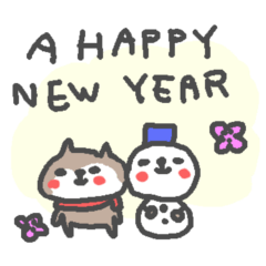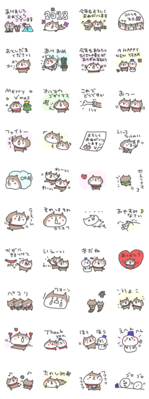 2018年のお正月、元旦、いぬ年のあけおめスタンプです。 寒い冬の犬さんたち。今年もよろしく、あけましておめでとう、A Happy New Year!クリスマスも。 良い一年を。にしおかあき より発売