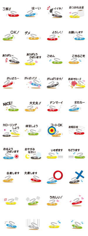 カーリングをヒントに考案された生涯スポーツ、カローリングのジェットローラをモチーフにした、文字大きめでクラブやサークル活動・普段使いもしやすいスタンプです。bft より発売