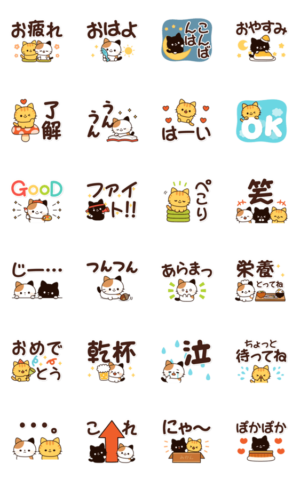 でか文字でおじいちゃんやおばあちゃんも読みやすくて使いやすい♪レトロ可愛いネコさん達のスタンプ第二弾です!(三毛猫・黒猫・トラねこ・デカ文字・大きな文字)DECOR より発売