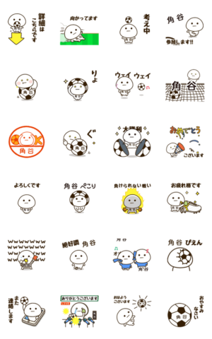 体やボール、声出しに名前入りで気持ちを繋ぐ「角谷,かくたに,すみや」さん専用サッカースタンプ!エンジョイフットボール☆byだいふくまる。