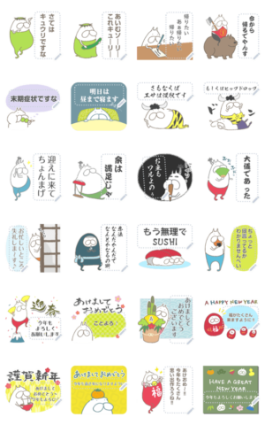 和風をテーマにしたメッセージスタンプです。文字をかえてオリジナルのねこタイツスタンプが作れます。新年のご挨拶にも使えるスタンプ付き。( ※ 再販スタンプです。) 現在この商品は一部のスマートフォン版LINE 10.3.0以上のトークルームでのみ使用できます。動作環境の最新情報はヘルプをご確認ください。