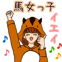 おウマさんの着ぐるみを着た女の子(娘)のスタンプです。競馬仲間とトークを楽しみましょう。よく使う日常会話もあります。yoka-yoka より発売