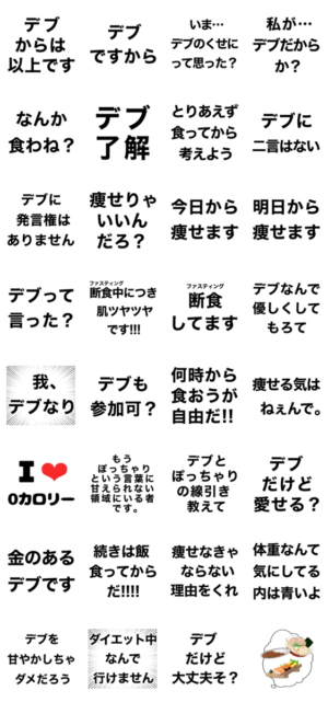 今日から痩せたいでぶ/痩せる気のないデブのためのスタンプ【ぽっちゃりも使える】Yoroniku より発売