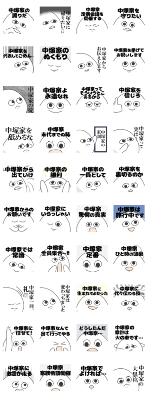 家族間の業務連絡ラインにも使える中塚家専用名前LINEスタンプです。プレゼントにもおすすめ。兄弟姉妹/夫婦/結婚/親戚/一家/おじいちゃん/おばあちゃん/お父さん/お母さんひとみ屋 より発売