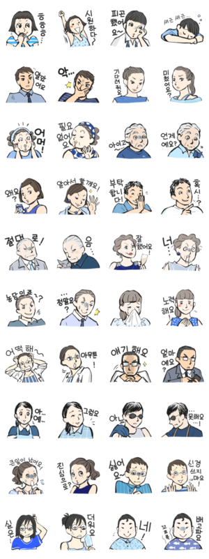 韓流スター、韓国ドラマの登場人物のように、表情豊かに演じましょう!韓国語(ハングル)スタンプです。