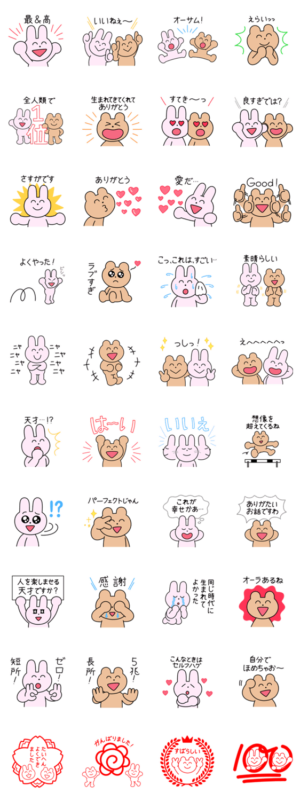 シリーズ化していて、いくつも出ている中でも新しいものです。このうさぎとくまのシリーズは仲のいい相手でもそんなに親しくない相手でも使える軽さがあり、汎用性が高いので自分自身いくつも購入し使っています。程よいふざけ加減でとても使いやすいです。