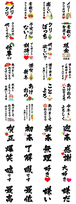 筆文字でクリスマス・年末年始・お正月にオススメのスタンプ♪年賀状にも♪ ※このスタンプはトークルームで大きく表示されるBIGスタンプです。NetworX より発売
