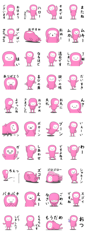 ピンク色した小さな謎の生物、ワンダーサム。アニメーションスタンプ高くて買えねーよっていう人用、40個スタンプです。bigboss より発売