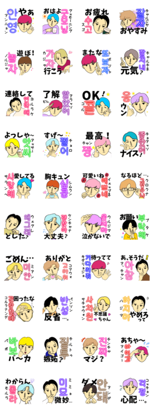 イケメン男子の韓国語+日本語 スタンプ画像一覧