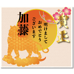 年末年始のご挨拶に使えるデザインです。開運を願って縁起物で彩りました [加藤,かとう,かとお,正月,年賀状,新年,寅年,敬語,龍,鳳凰,富士,2022]