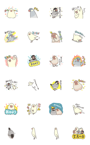 まいにちの生活で使える、挨拶スタンプ。 文鳥さんたちと一緒に、日常を彩ろう。BIRDSTORY より発売