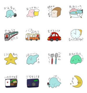 単細胞生物でありながら、感情で体色が変化する謎の未確認生物んちゃごろさん。 ※1「先おふ」…夕飯より先にお風呂に入ること、※2「のたこ」…乗ったよ