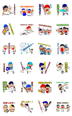 野球を楽しむ関西弁の子どもたちのスタンプです。Baseball Entourage より発売