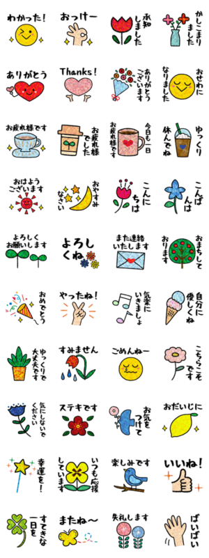 シンプルな絵とシンプルな文字が派手過ぎにならなくて使いやすいスタンプ。