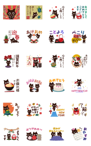 毎年使える!ナチュラルで絵本みたいな猫の年末年始Ver。可愛い猫のスタンプでみんなに年始の挨拶をしよう!mugiko より発売