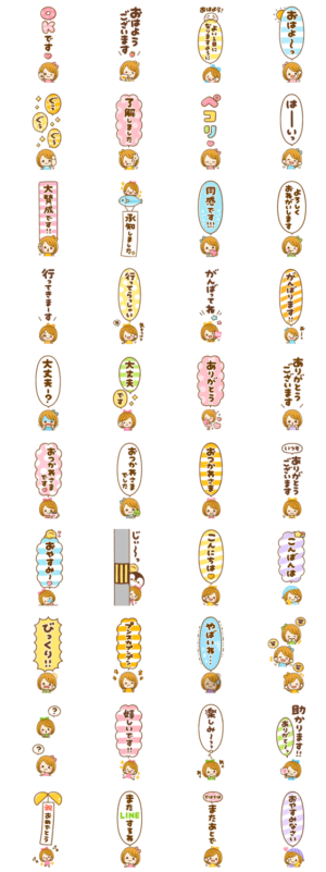 縦に長ーいBIGスタンプ♪シンプルだから毎日の会話で使いやすい!大人可愛い女の子のまったりほのぼのスタンプです。見やすいデカ文字で敬語もいっぱい♪カラフル吹き出し ※このスタンプはトークルームで大きく表示されるBIGスタンプです。ぴよたぬき より発売