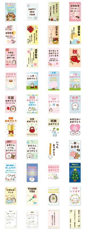年賀状のような可愛いスタンプなので、とても使いやすくて好きです