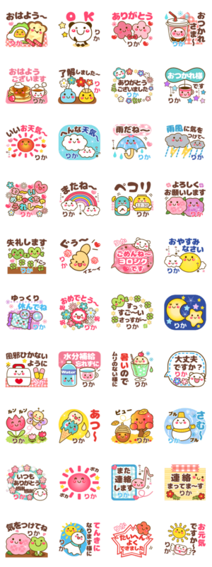 【りか】名前/ちゃん/あだ名。リカ、Rika、里香、梨花等❤【天気&日常】15 お名前スタンプ !挨拶に天気で会話が続く!❤タメ語と敬語両方入❤探【○○○usa】作:usakazu