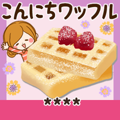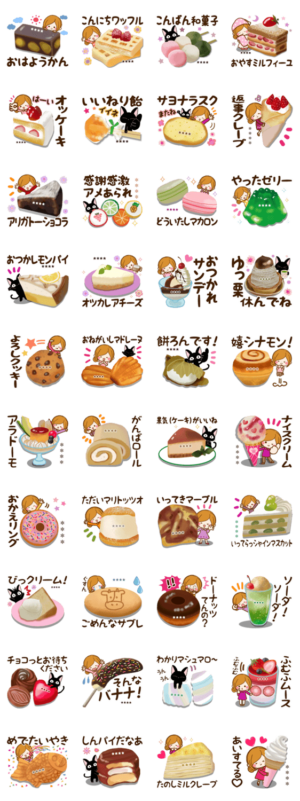 おいしそうなおやつがいっぱいの 日常に便利なダジャレカスタムスタンプです♪☆大人かわいい黒猫ちゃんも一緒です 「ほのぼのカノジョ」ルルー作ルルーのなまえスタンプ より発売