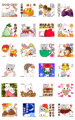 可愛い子猫達の飛び出して動く秋冬 スタンプ画像一覧