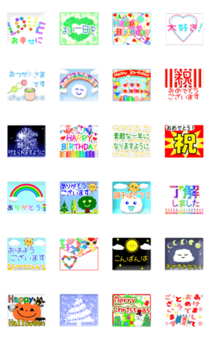 お誕生日・年賀・結婚・出産・合格などのお祝いに年中使えて便利です♥日常的に使いやすい敬語もあり♥お正月・クリスマス・ハロウィンのおまけ付き
