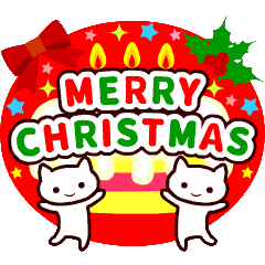 クリスマスシーズンお祝い冬仕様スタンプ♪お誕生日あり!Merry Christmas,メリークリスマス,Xmasの文字入りカード!雪だるま,猫も登場!ありがとう,おやすみも♪