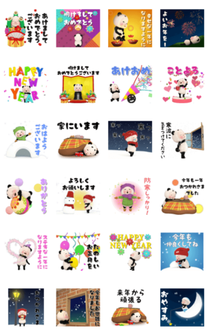 毎年使えるパンダタオルの【年末年始&冬】ポップアップスタンプです。DanSian より発売