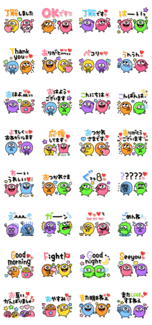 カラフルモンスターの毎日使える無難な日常会話セットです。 誰でも使える敬語 MIX♡ かわいい/会社/家族/カップル/連絡用/大人可愛い/ポップ/ガーリーちゃぴ より発売