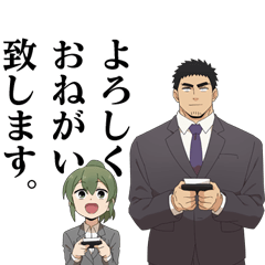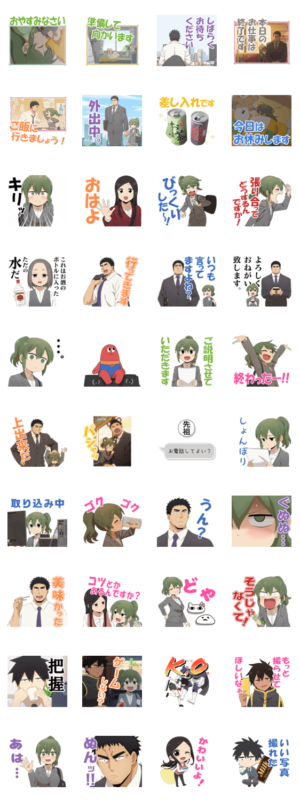 会社の先輩と後輩のラブコメアニメのスタンプです。にぎやかなキャラクターたちをラインに飾りましょう!