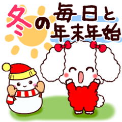 トイプーちゃんの冬スタンプ。よく使う日常会話と年末年始に便利なスタンプ。クリスマス/お正月/寒い冬/トイプードルhirahira より発売