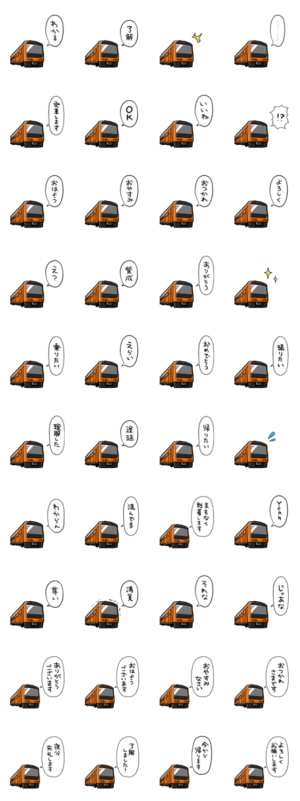 しゃべる電車のスタンプです。鉄道好きの方、鉄オタ撮り鉄駅員さんとかにどうぞ。シンプルな基本のあいさつや敬語もあるので友達家族会社や仕事用にもどうぞ。オカヤマ より発売
