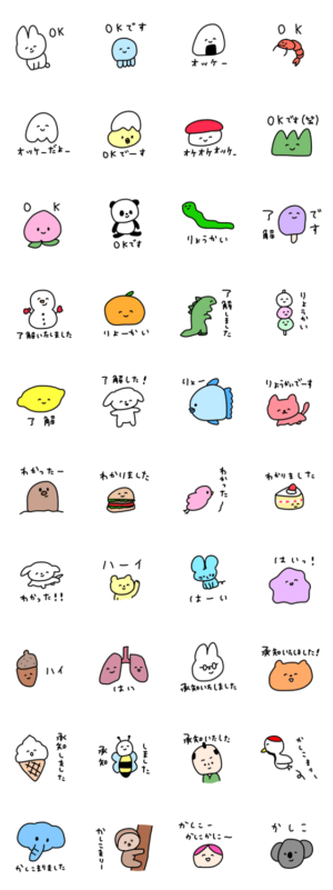 「了解」「OK」「はい!」のスタンプです。のんびしたイラストが良いです♪