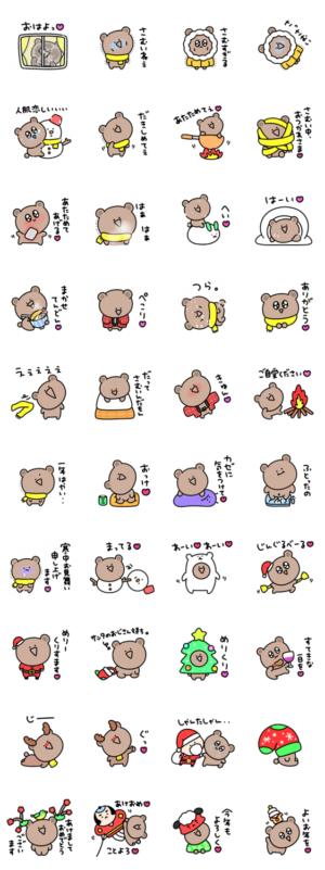 シュールなミニくまの冬♡スタンプです。クリスマス☆年賀スタンプ入り☆毎年使えます!eribo より発売