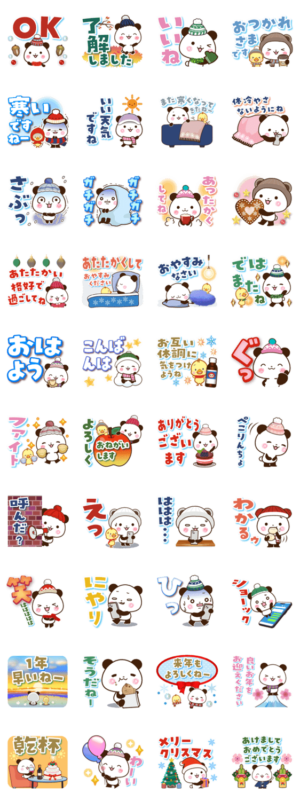 寒い冬に使える日常スタンプです。クリスマス・年末年始・お正月も使えて便利です。ひよこも登場します♡マキたん より発売