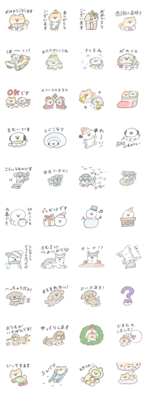 「こんにちは、いぬです」の冬スタンプです!じゅん より発売