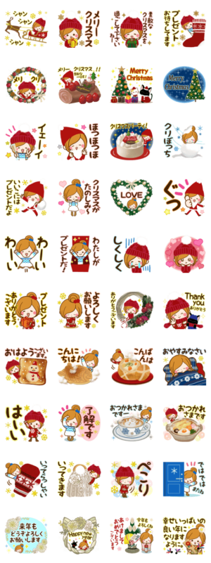 毎年使えるクリスマスのスタンプです☆少しでも楽しい気持ちになれますように☆その他、冬の日常&年末年始の挨拶スタンプも入ってお得です♪「ほのぼのカノジョ」シリーズ