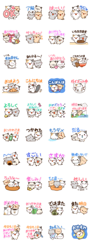 『ちびミケ』の三毛猫や、『ちびシャム』のシャムネコ、『ちびブチ』のぶち猫、アメショ等の猫が登場する、ふだんよく使う言葉のスタンプ。ねこ好きの方にぜひ。【かたこ】