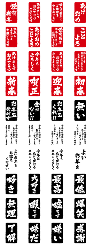 年末年始・お正月・年賀状にどうぞ♪その他、日常会話に使える言葉も!(筆文字・判子風スタンプ)