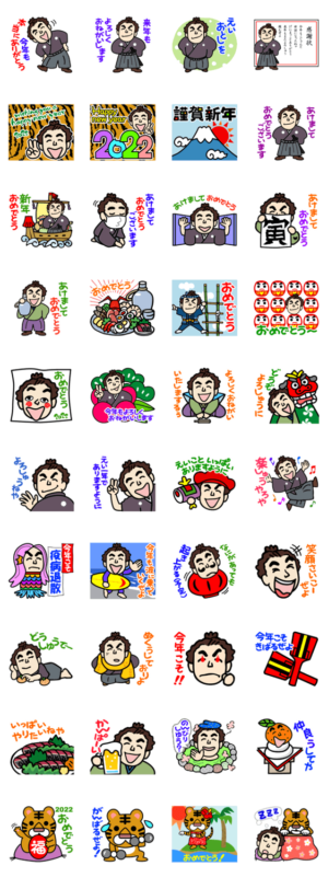 土佐弁の愉快なお侍たち7 2022年お正月編 スタンプ画像一覧