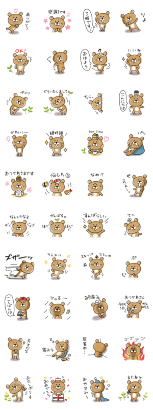 シンプルでゆるかわいいクマのスタンプ40種類です。m-coffee より発売