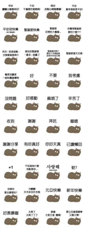 キュートでのんびりとした猫のグループ、怠惰な表情、愚かな姿勢、おはようとおやすみ、クリスマス、明けましておめでとう、愛しています、実用的な黄金のフレーズ。