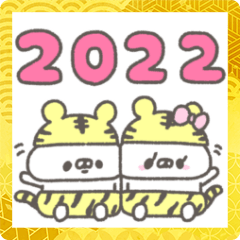 くまやん。お正月スタンプです。虎の着ぐるみ、着物で新年のあいさつを!enacoco より発売