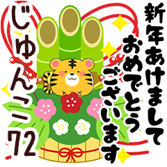 じゅんこ/ジュンコ専用72。正月/お正月/年賀/寒中見舞い/年賀状/寅年/あけおめ/ねことうさぎの名前スタンプ番外編/山田まぽん作。※他の名前は「○○専用72」で検索★