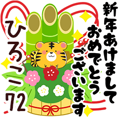 ひろこ/ヒロコ専用72。正月/お正月/年賀/寒中見舞い/年賀状/寅年/あけおめ/ねことうさぎの名前スタンプ番外編/山田まぽん作。※他の名前は「○○専用72」で検索★