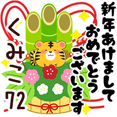 くみこ/クミコ専用72。正月/お正月/年賀/寒中見舞い/年賀状/寅年/あけおめ/ねことうさぎの名前スタンプ番外編/山田まぽん作。※他の名前は「○○専用72」で検索★山田まぽん 新 名前スタンプ より発売