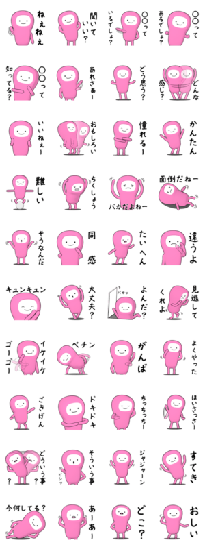 ピンク色した小さな謎の生物、ワンダーサム。 アニメーションスタンプ高くて買えねーよっていう人用、40個スタンプです。