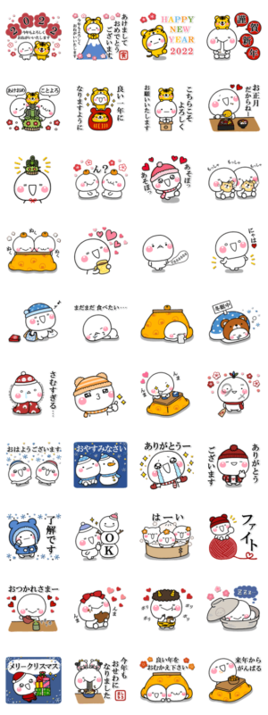 冬に使えるスタンプ/クリスマス/年末/お正月/節分/バレンタインとたっぷり詰め込んだしろまるのスタンプです。こちらはリニューアルverのイラストとなります。お名前スタンプ専用【いしいともこ】 より発売