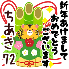 ちあき/チアキ専用72。正月/お正月/年賀/寒中見舞い/年賀状/寅年/あけおめ/ねことうさぎの名前スタンプ番外編/山田まぽん作。※他の名前は「○○専用72」で検索★山田まぽん 新 名前スタンプ より発売