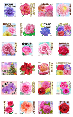 こんな美しいお花の絵のスタンプを画面に乗せられるのがとっても嬉しいです。