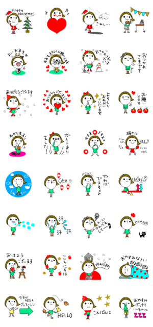 女の子がかわいくて好きなスタンプです。冬の日常生活シーンがたくさんあり、たくさん使えます。
